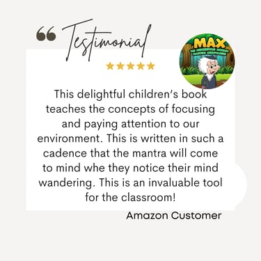 This delightful children’s book teaches the concepts of focusing and paying attention to our environment. This is written in such a cadence that the mantra will come to mind whe they notice their mind wandering. This is an invaluable tool for the classroom!